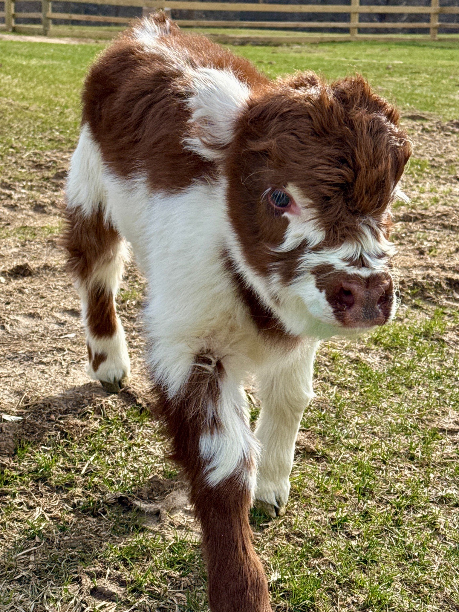Lucy is a Chondro Positive Miniature Highland Heifer Calf.