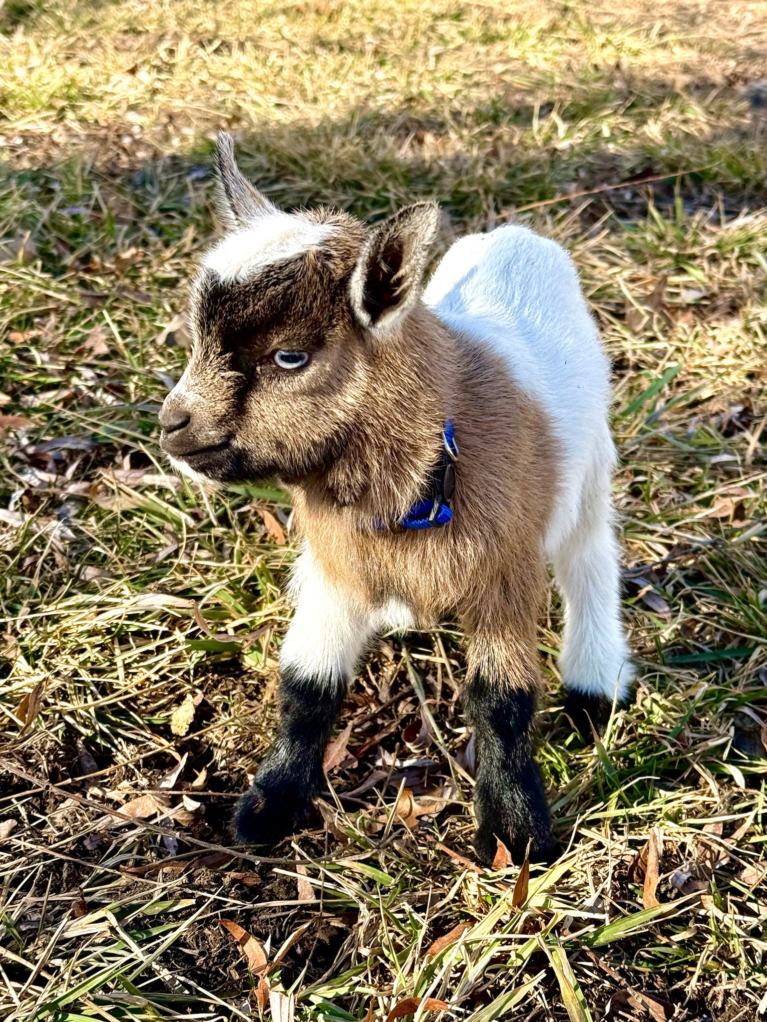 Lenny is a Nigerian Dwarf buck who loves to jump, play, and explore the barn. He’s sweet, active, and always ready to follow whatever fun is happening around him. Like most young goats, he enjoys being part of the herd and spending his days bouncing around with his brother. He’ll be ready for his new home once he’s fully weaned.