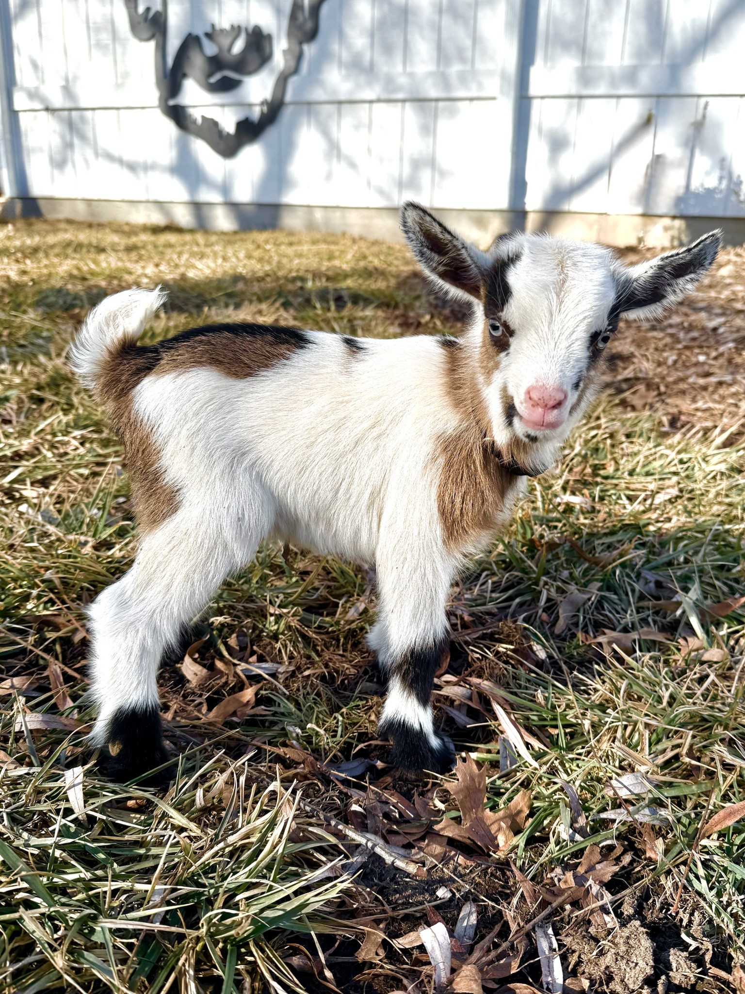 Squiggy is a Nigerian Dwarf buck who brings a lot of fun and energy to the barn. He enjoys jumping around, playing with his brother, and exploring every corner of the space. He has a friendly, curious personality and will be ready for his new home once he’s fully weaned.